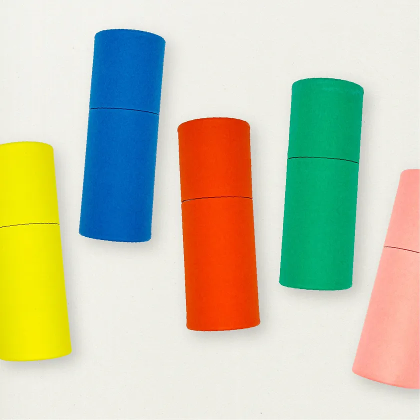 カラフルな色紙で着飾った丸筒です。