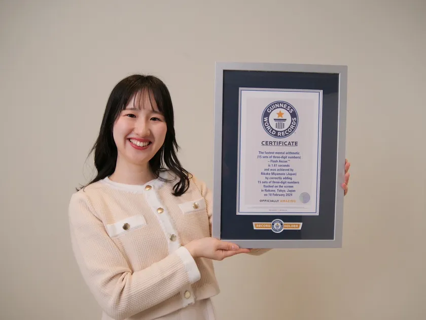ギネス世界記録(TM)は、2024年3月19日に一般社団法人日本フラッシュ暗算検定協会名誉会長の東尾 理子氏から授与された。一般社団法人日本フラッシュ暗算検定協会主催の「フラッシュ暗算検定」は、文部科学省後援の検定試験。インターネットに繋げて自宅で受験が可能。受験者数は延べ150万人を超える。