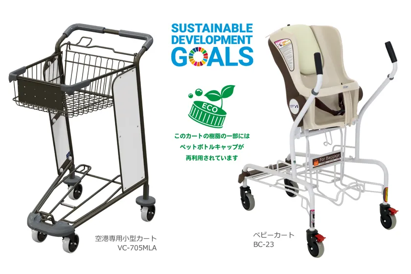 使用しやすく工夫されたカートであるとともに、「環境面」「衛生面」ともに時代のニーズにマッチした空港専用小型カートとベビーカートです。