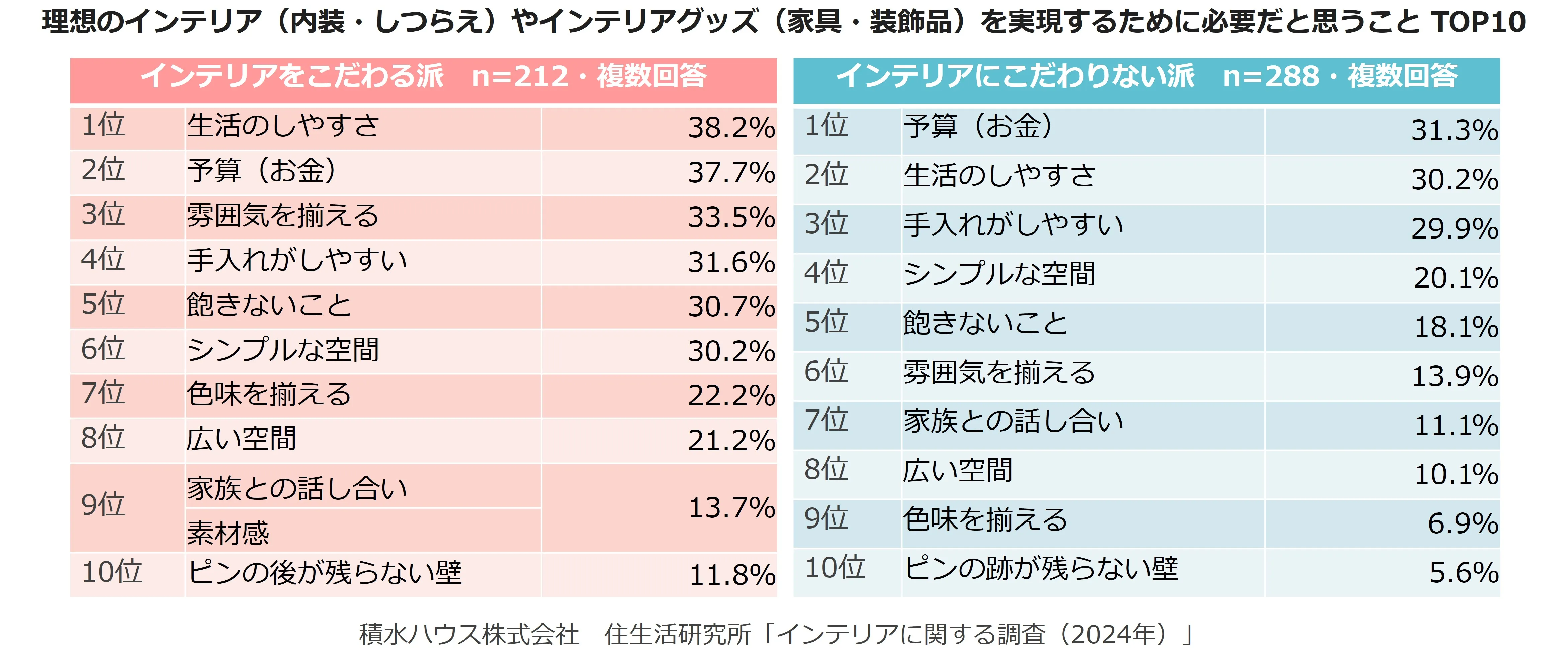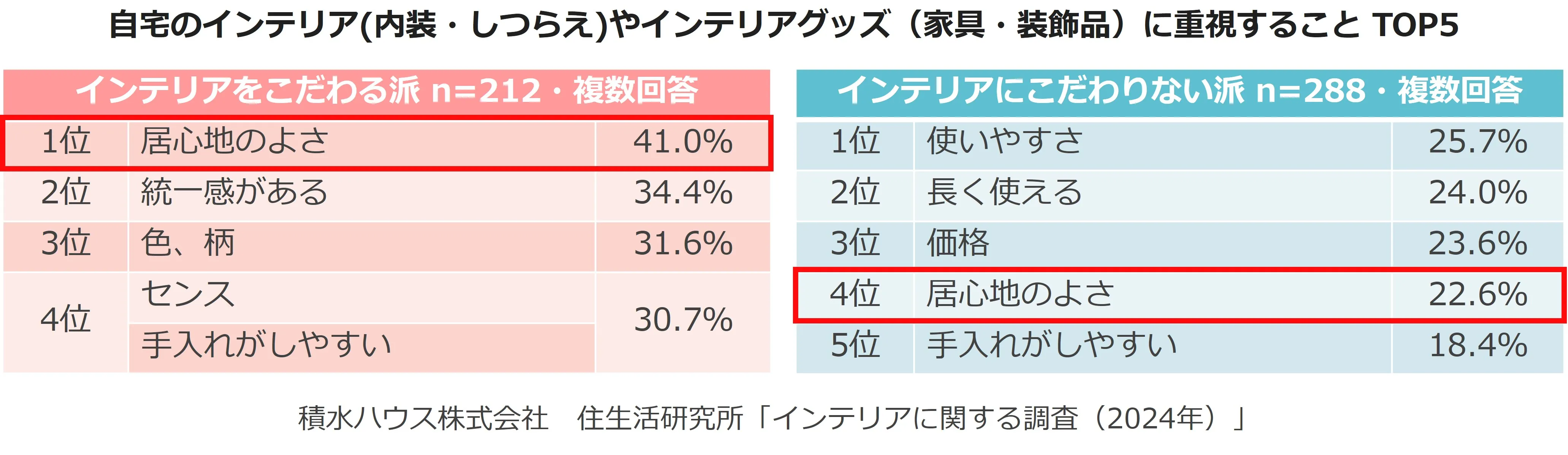 ・引用元が「積水ハウス株式会社 住生活研究所」による調査である旨と、引用元調査「インテリアに関する調査(2024年)」の記載をお願いします。