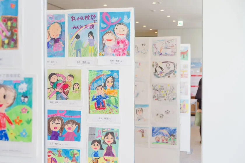 子どもの絵画から発するメッセージ、また当協会からの啓発資料配布や当日のレクリエーションを通じて、乳がん検診への知識理解を深め受診契機とする
