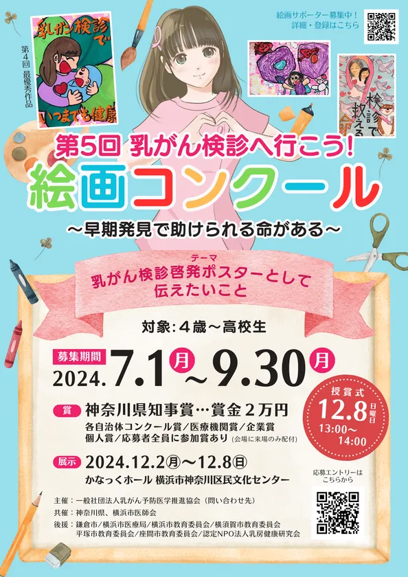 乳がん啓発推進を行う一般社団法人乳がん予防医学推進協会(所在地:神奈川県横浜市中区、代表理事:野澤 亜樹・丸山 裕美)は、4歳~高校生を対象に「第5回 乳がん検診へ行こう絵画コンクール」を開催します。