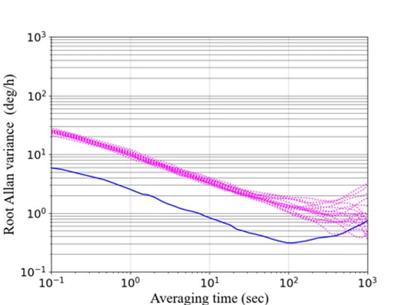 ・低バイアス変動:ドリフト誤差0.39deg/h以下(IMU16個合成時)