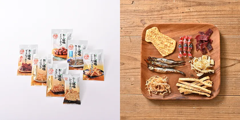 おいしい減塩おつまみシリーズの全種詰め合わせセットです。自分好みのおつまみをぜひ見つけてみてください!
