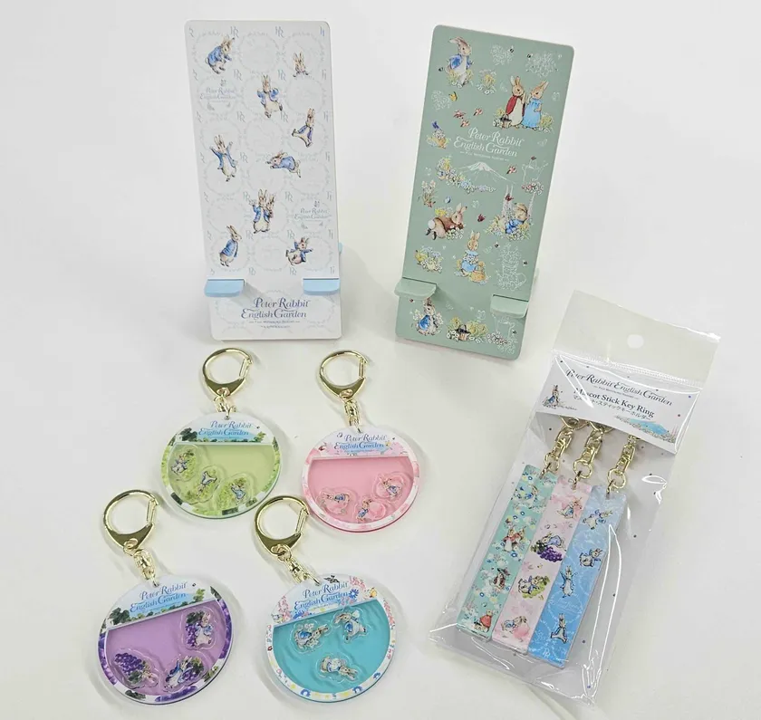 ピーターラビット(TM) イングリッシュガーデンオリジナルの「ぬいぐるみ」や、ティータイムにぴったりなティーストレーナー付きマグカップやオリジナル絵柄の「甲州印伝」商品などここでしか買えない商品を多数販売しています。春の新商品は、山梨の名産、桃やぶどうを持ったピーターラビットが可愛い「フレークキーホルダー」や、「モバイルスタンド」が登場します。