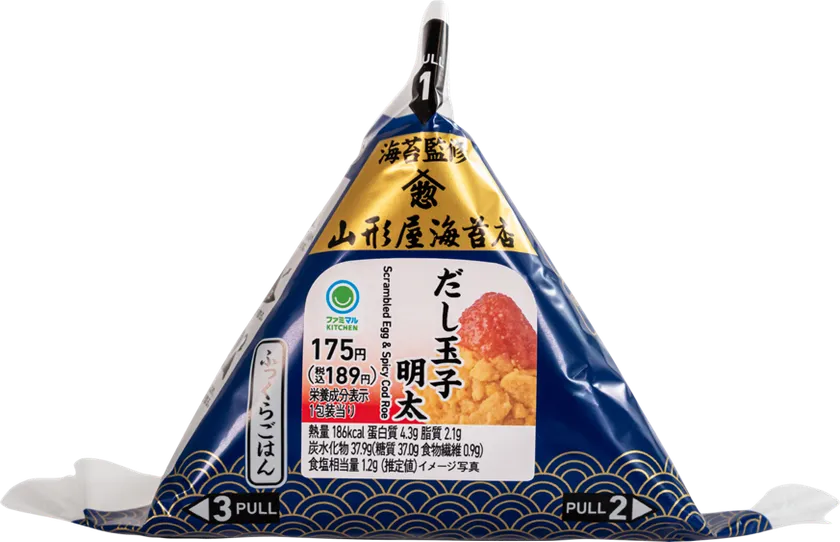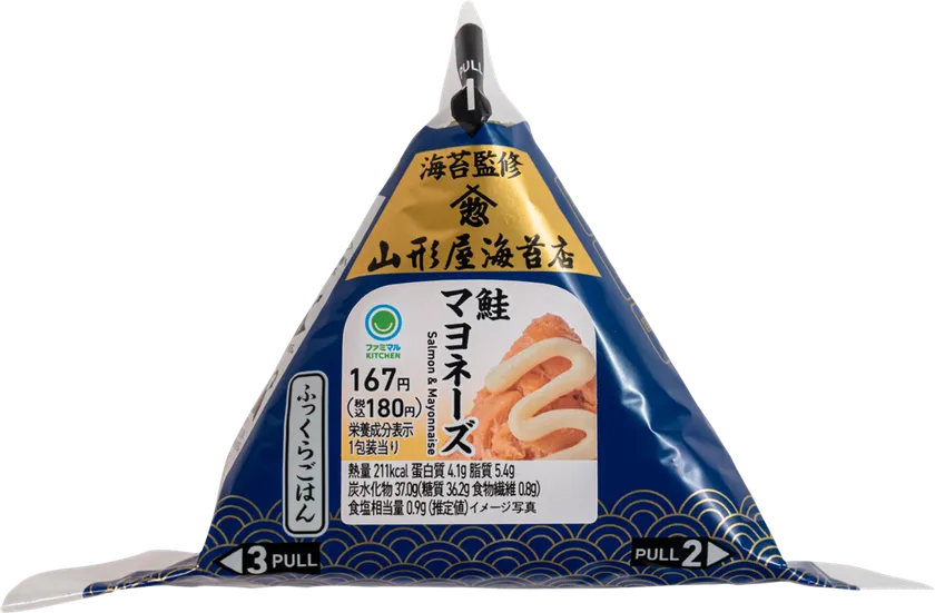 このたび「手巻おむすび」では、山形屋海苔店が創業以来260年で培ってきた知識や経験を元に監修された海苔を使用し、「手巻鮭マヨネーズ」と「手巻だし玉子明太」の2つの味わいのおむすびを発売いたします。艶があり、ひと口食べるとふわっと香る磯の香りと、パリッと食感がたまらない、厳選した海苔を使用した贅沢な一品です。ファミリーマート自信作のおいしいおむすびを、ぜひお召し上がりください。
