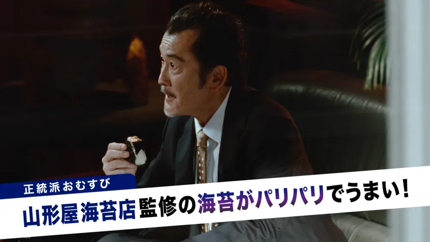 新TVCM「ファミマル おむすび 対決」篇では、吉田鋼太郎さんがアタッシュケースを前に、何やら怪しげな取引をしている最中、中から出てきたのは、山形屋海苔店が海苔を監修した「正統派」おむすび「手巻鮭マヨネーズ」。一口食べて思わず「海苔がパリパリでうまいなぁ」と目を輝かせる吉田さん。続いて「個性派」おむすび「どん兵衛天ぷらむすび」が渡され、かぶりつくと「ダシが染みてうまぁい」と満足な表情を浮かべます。最後はファインダー越しに「あなたはどっち!?」と選択を求めます。