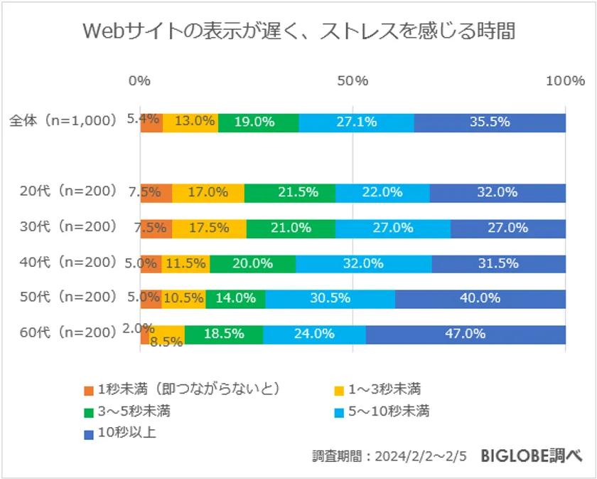 Webサイトの表示が遅く、 ストレスを感じる時間は5秒未満が約4割 ~BIGLOBEが 「インターネット利用に関する意識調査」第3弾を実施~