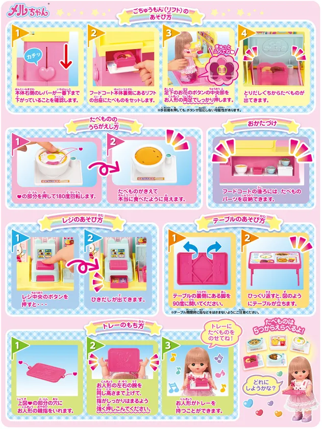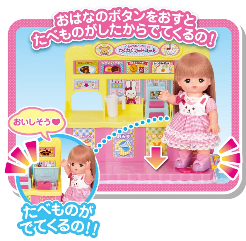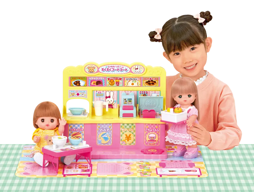 メルちゃんがフードコートでおしょくじできる 「たべものいっぱい!わくわくフードコート」が新登場! 主な玩具専門店・量販店で、4月27日(土)に発売いたします。