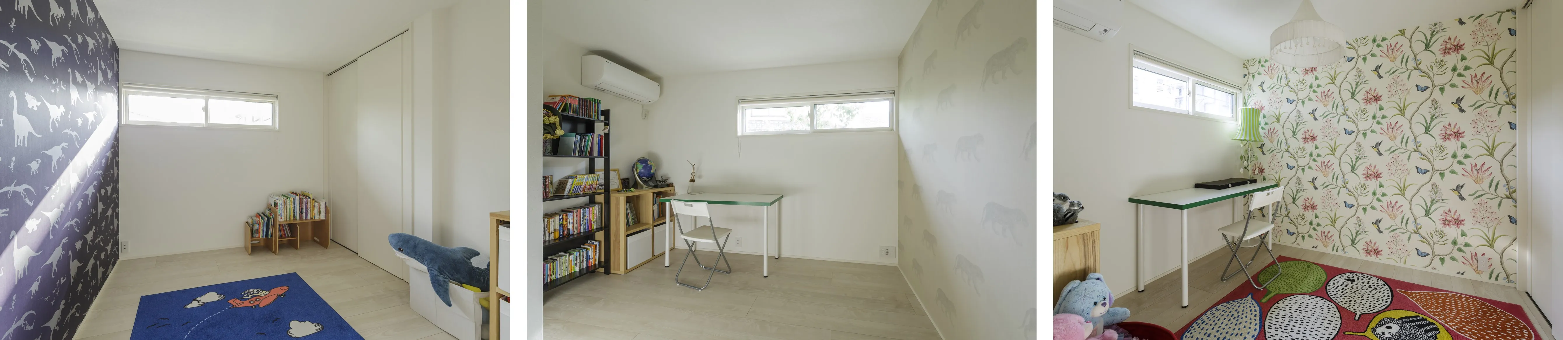 3人のお子さまがそれぞれ選んだ壁紙が明るく楽しい印象を与える子ども部屋