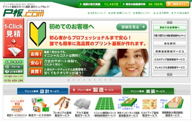 2003年に国内初のプリント基板専門ネット通販サイトを提供開始し、取引実績13,064社(2013年8月22日現在)と国内シェアNo.1を誇るP板.comは、“開発環境をイノベーションする”という経営方針のもと、今後もお得で便利な割引サービスをご提供していきたいと考えております。