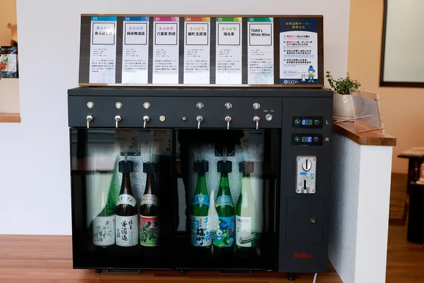 イートインコーナーもあり、店内で購入した商品を食べるスペースや有料日本酒試飲サーバーも設置。1杯300円から試飲をすることができます。