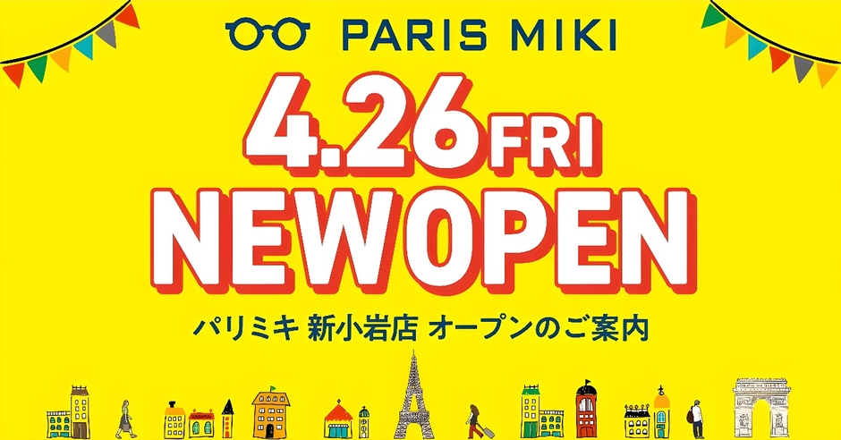 株式会社 パリミキ(本社:東京都港区、代表取締役社長:恒吉裕司)は、2024年4月26日(金)東京都葛飾区新小岩に、パリミキ 新小岩店をオープンいたします。