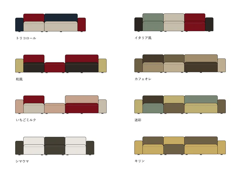 固定のカラーパターンからお選びいただいていた『COLON/コロン』ソファですが、この度、背・座・肘パーツにそれぞれお好きなカラーを設定できる、セミオーダー式での受注がスタート。