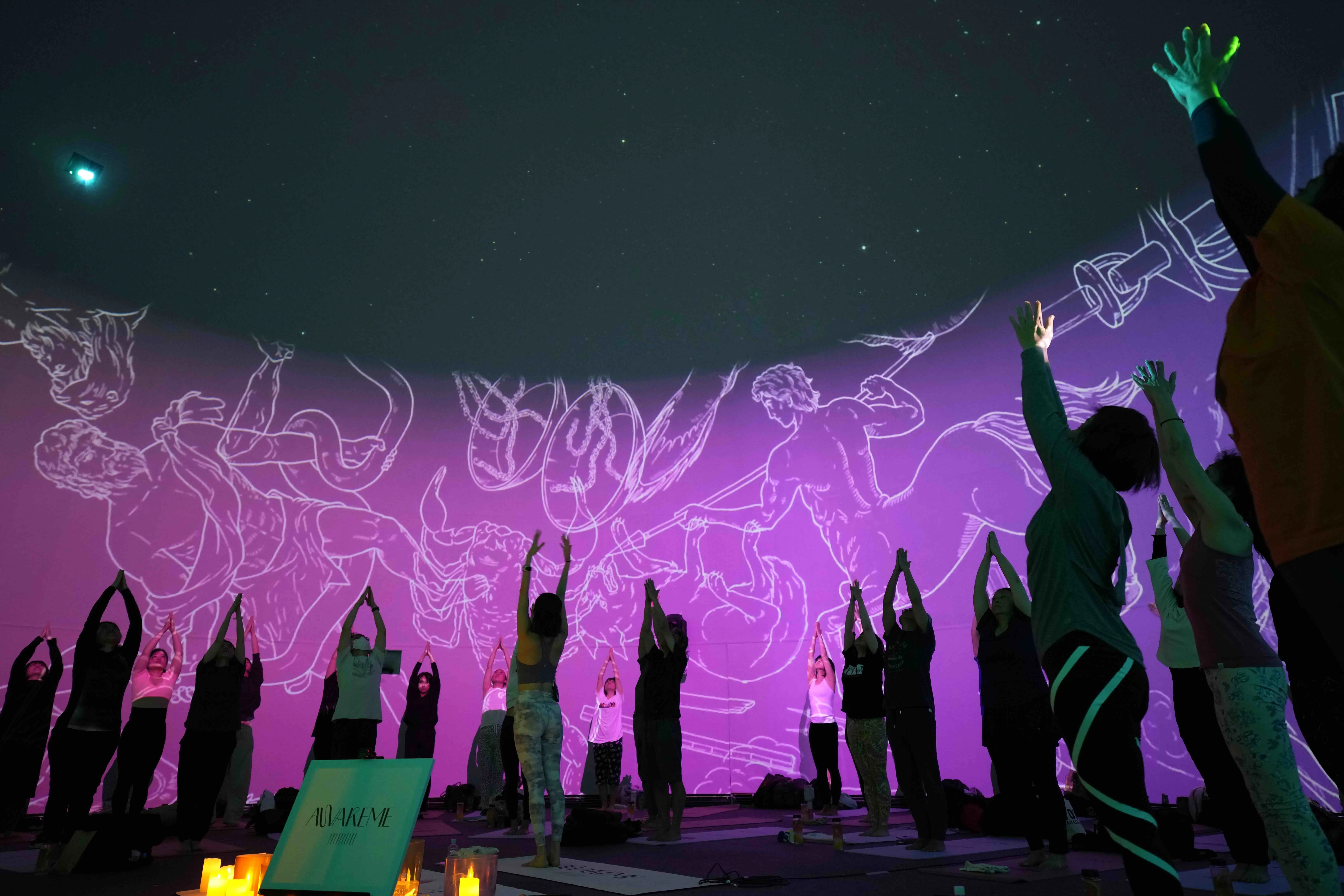 ヨガ、瞑想、音楽&ダンスで心と身体を整え解放するウェルネスイベント「AWAKEME」と共催する本イベント。プラネタリウムドームに映し出された満天の星が作り出す非日常的な空間で、ヨガとサウンドバスをお楽しみください。