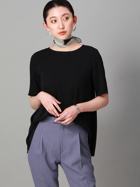 汗ばむ季節、ビジネススタイルも軽装になりジャケットを脱ぐ機会が増えていく一方で、お客様からはジャケットを脱いだ際に二の腕が見えることを懸念される声が聞かれていました。そこで、通常の半袖よりも袖丈が長く、肘に掛かる程度の丈感で二の腕を隠してくれる5分袖ブラウスを企画し、前年数量の2倍に拡大して展開します。ジャケットのインナーとしてはもちろん、1枚でもビジネスシーンでの着用に安心感を与えます。