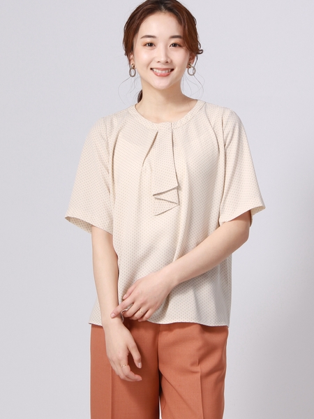 |胸元のボウタイデザインとドット風プリントが華やかな印象に。抗菌・消臭機能付き
