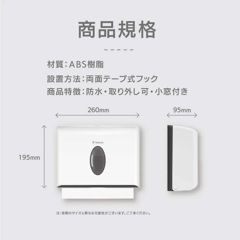 中国でも指折りの衛生用品メーカー「MODUN」。ハンドドライヤーを主力に、学校や病院、ホテルなど大型施設でも導入されている実績のあるメーカーです。当社では、「MODUN」の「ペーパータオルホルダー」2種と「ソープディスペンサー」3種他を取り扱っています。