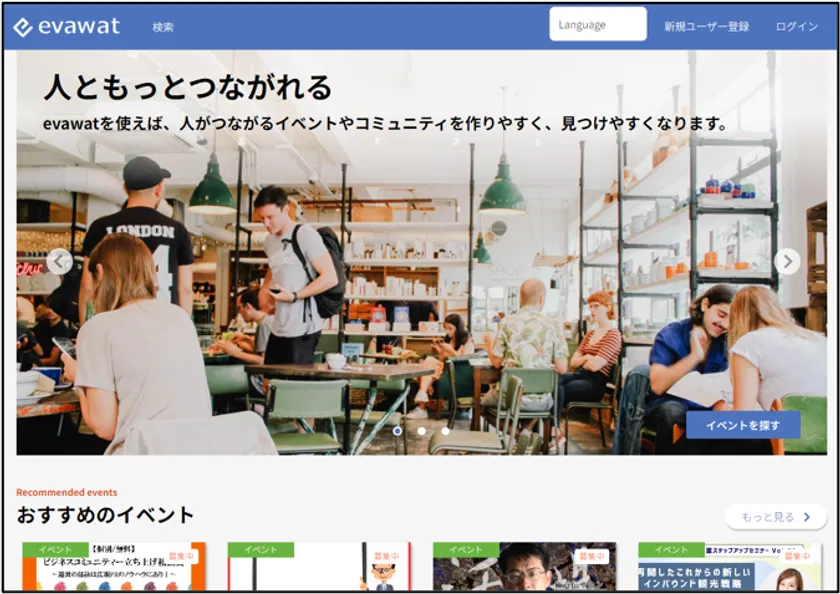 「evawat」は、オンラインサロンや異業種交流会、eラーニングにおけるコミュニティの運営・管理を支援するクラウドサービスです。コミュニティのメンバー管理やイベント立案、決裁システム、コミュニケーションツールなど15種類の機能を備え、コミュニティ運営を一括で管理できます。最大の特徴は、コミュニティ同士の連携を可能にする「ブリッジ機能」(日本初、2023年7月現在、自社調べ)です。ビジネス・コミュニティの連携により、中には1週間など短期間で相互の特徴や強みを取り入れたり、協業を生んだりしています。