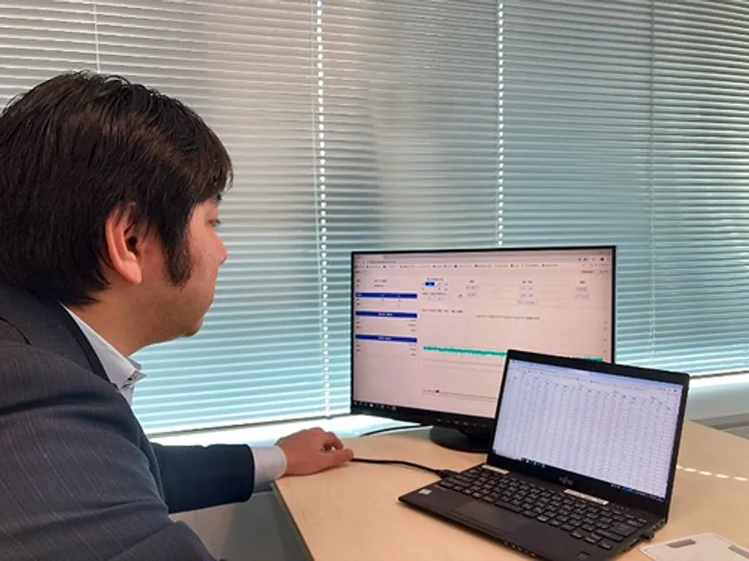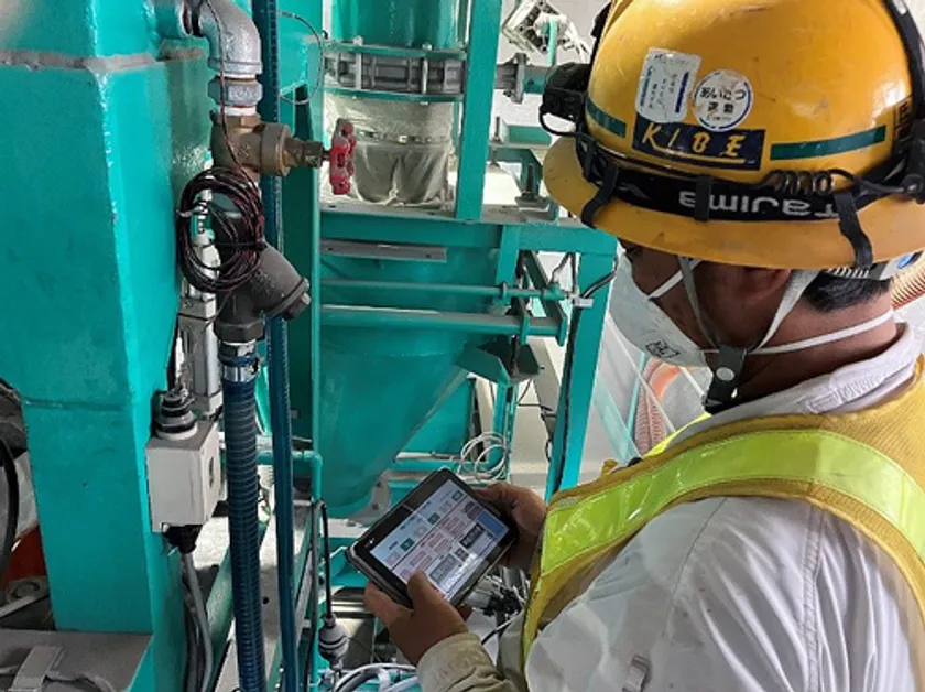 写真1:タブレットにより操作室から離れた場所で運転操作
