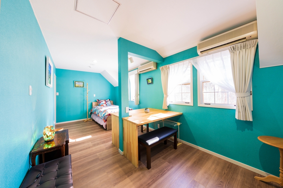寝室は、色彩鮮やかに異なったイメージでデザインされ、用途に応じて6タイプの特別な空間が楽しめます。屋外にはウッドテラスが備えられており、気軽にアウトドア気分を楽しむことも可能。「スイートヴィラ 清里森テラス 美雲」では、清里の大自然の中、ゆとりの空間と非日常的な生活をお過ごしいただけます。