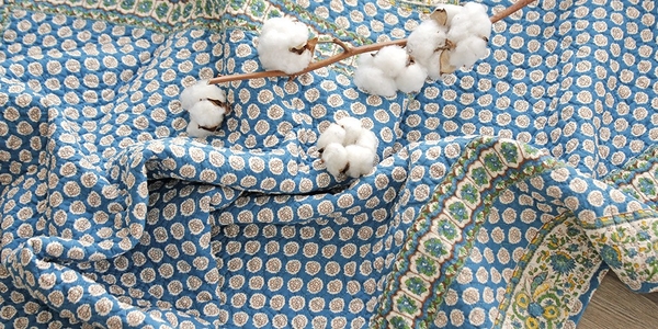 プロヴァンスの伝統柄をモダンに再解釈した美しいプリントファブリックが、リビングやベッドルームに軽やかな表情を添えます。