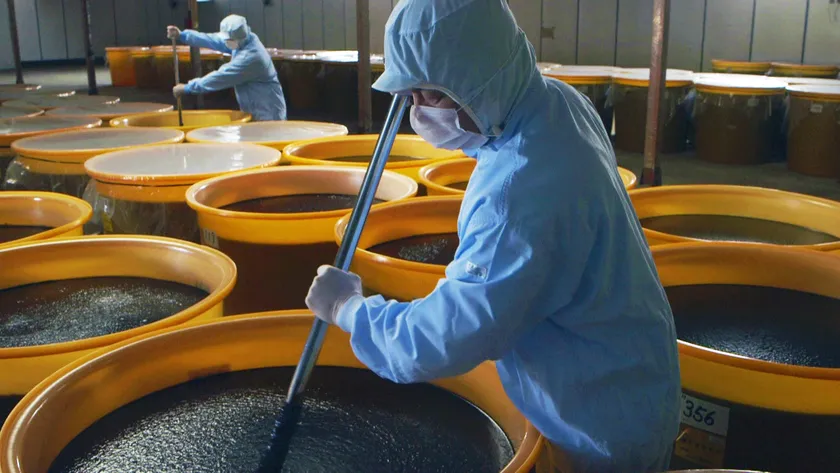 造り酒屋の11代目当主として生まれた松浦 新吾郎(現会長)が広島・因島で23年間の研究の末に完成させた「万田酵素」。53種類以上もの植物性原材料を段階的に発酵させる「複合発酵」は、職人技と言っても過言ではありません。また、果実などは皮や種までまるごと使用し、発酵・熟成の過程では熱を加えない「常温発酵」に、そして添加物(保存料・着色料・香料)はもちろん水さえも使用しない「自然発酵」にこだわって作られています。