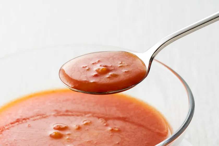 ガスパチョはスペインのアンダルシア地方の冷製スープで、暑さが厳しい夏に親しまれている料理です。一般的にはトマトをベースに、きゅうりやピーマンなどの野菜とパンなどをミキサーですりつぶして作ります。中には、パプリカが使われるレシピもあることから、ニシキヤキッチンの「三種のパプリカ香るガスパチョ」もトマトをベースに、赤・黄・オレンジの3種類のパプリカの旨みを生かして仕上げました。トマトの酸味と甘みに夏野菜が溶け込んだ、暑い夏にぴったりの味わいです。