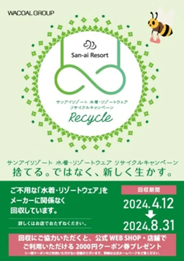 『San-ai Resort水着・リゾートウェアリサイクルキャンペーン』 4月12日から8月31日まで開催! ~回収協力で2,000円分クーポン券をプレゼント~