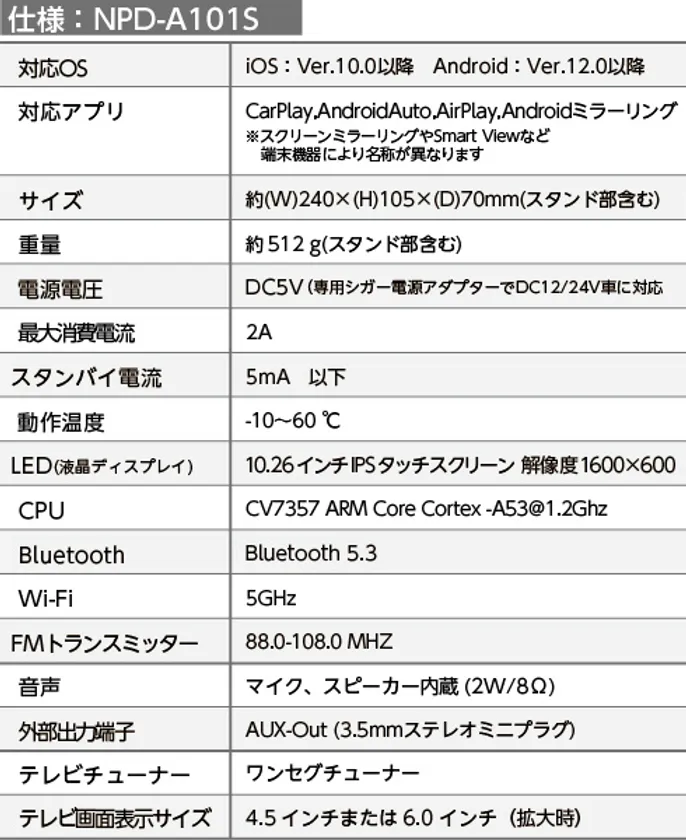 [NPD-A101S] ワンセグチューナー搭載モデル
