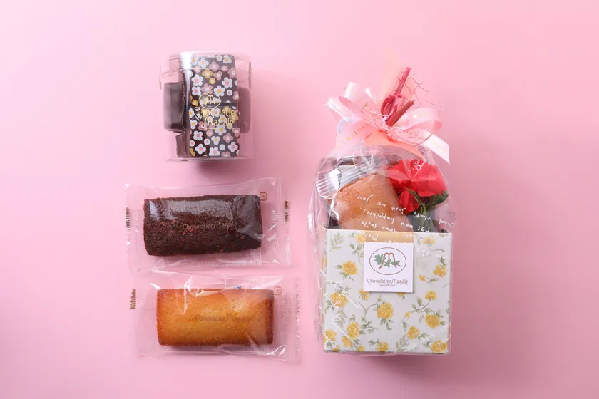 母の日限定のショコラブラウニー(ラクテ)と人気のチョコレート菓子、焼き菓子が7個入ったギフト。マサールのおすすめがギュッと詰まっています。
