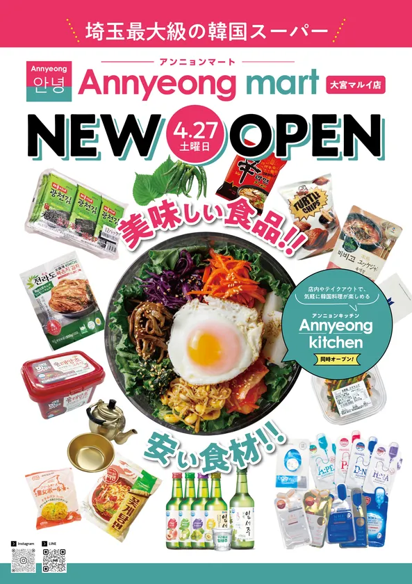広島・倉敷で韓国スーパーを経営する、有限会社マツヤ(所在地:広島県広島市中区、代表取締役社長:清水 計年)は、大宮マルイ1Fに最大級の品揃えを誇る韓国スーパー【Annyeong mart】を2024年4月27日(土)にオープンします。
