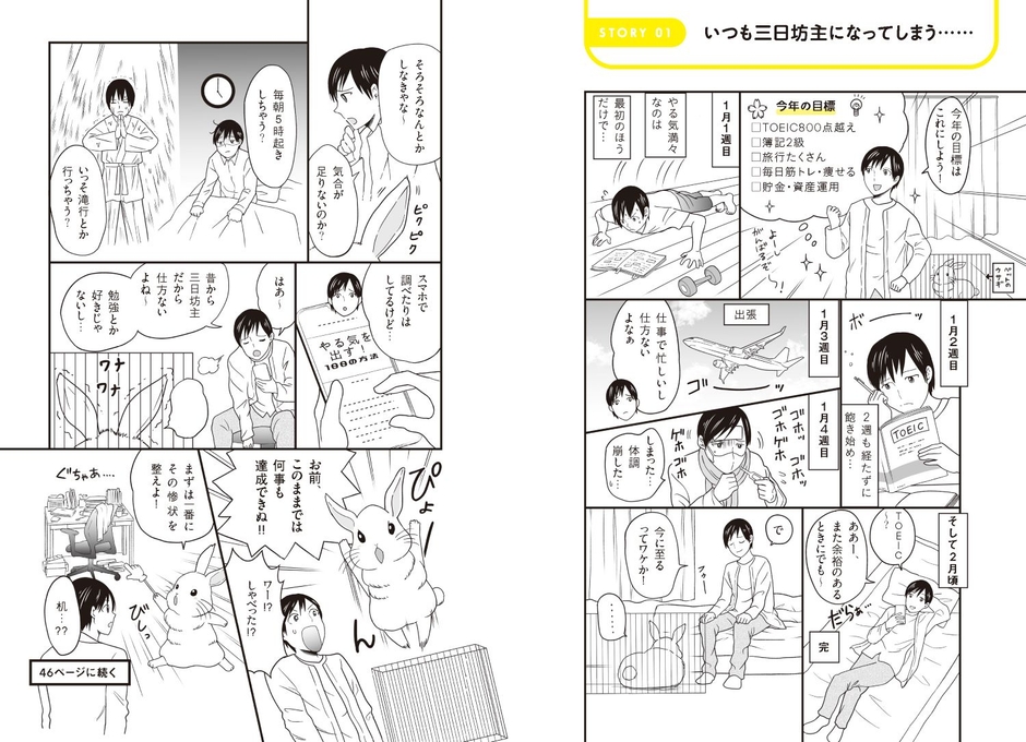 さらに、本文では、「目標を決めては挫折している主人公のストーリー」も漫画で紹介。