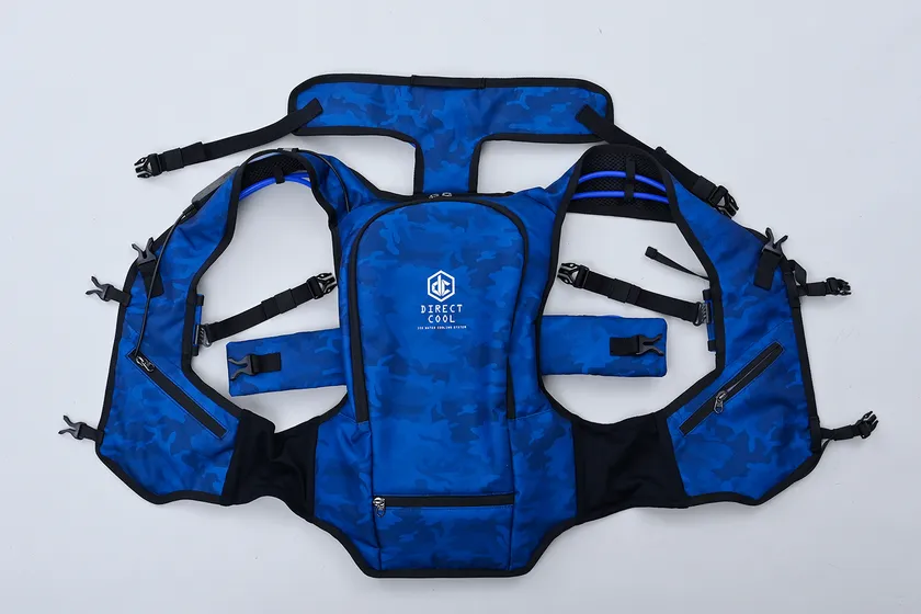 水冷服「DIRECT COOL」シリーズは、内側に張り巡らしたチューブに凍らせたペットボトル等で冷やした水を小型電動ポンプで送り込み、身体をダイレクトに冷やすことができる熱中症対策ウェアです。昨季は「一般」と長時間冷却可能な「プロ」の2種類を発売しました。