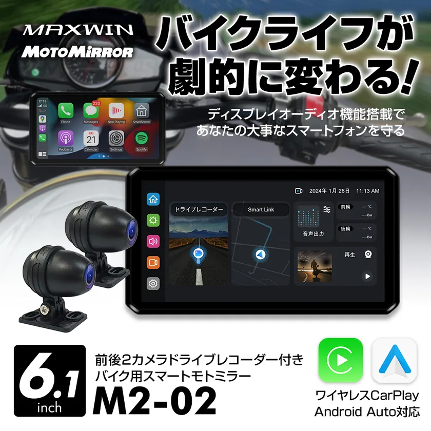 MAXWINのバイク用スマートモニター『M2-02』が入荷! 期間限定の定価より14,300円OFFで一般販売を開始!