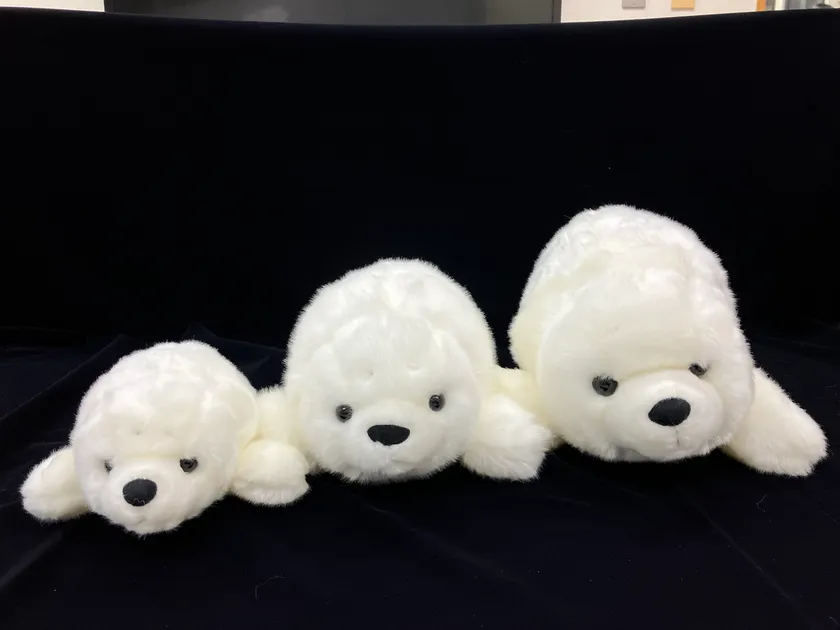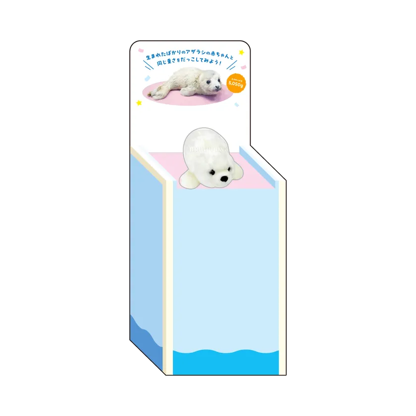 出生時の体重5,050gを再現したアザラシの赤ちゃんのぬいぐるみを設置します。抱きかかえると、気分はアザラシの飼育スタッフ!?