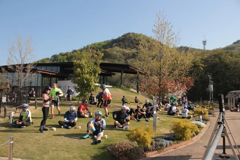 グラン・ツール・せとうちは、今年で10回目の開催となるサイクリングイベント。熟練者からファミリーまで幅広く楽しめるよう、距離の異なる5つのコース(40km、70km、100km、140km、170km)が用意され、「しまなみエクストラコース(170km)」は向島運動公園(広島県尾道市)をスタート&ゴール地点として愛媛県今治市で折り返すなど、しまなみ海道と海道沿いの島々をほぼすべて巡るコースです。島と島を繋ぐ特徴的な橋、そして瀬戸内の島々が織りなすしまなみ海道の絶景は参加者を楽しませ、たくさんの方がサイクリングの合間に写真を撮っていました。また、70km、100km、170kmのコースでは、全コース中最も標高が高く急こう配な坂道(シトラスパーク瀬戸田に向かう坂道、生口島)を笑顔で走りきる猛者の姿も。