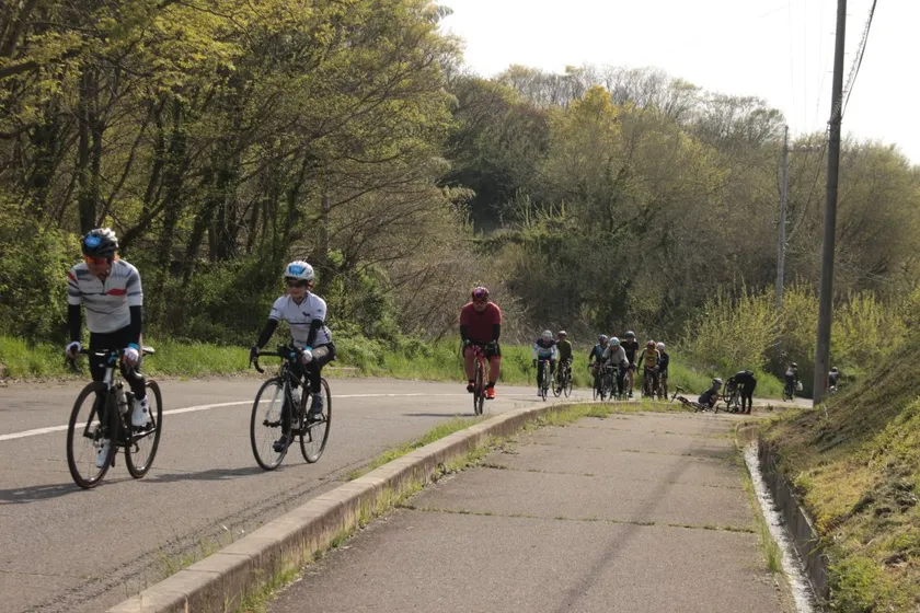 坂を上るサイクリストの方々