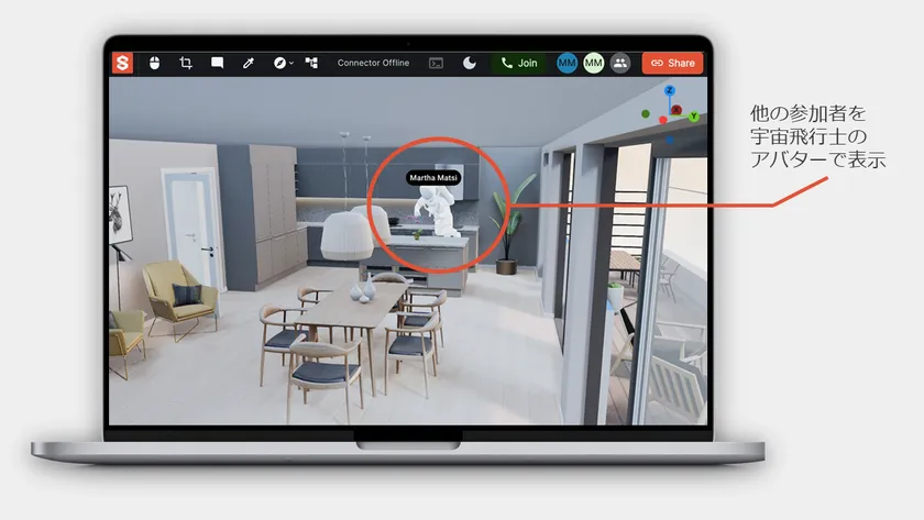 Studio3DXの場合は、閲覧者(顧客)側で高スペックなPCの準備やインストール等の設定が不要で、SNSやメールでURLを送信するだけで、通常使用しているChrome等のWEBブラウザを通じて3Dシーンを簡単に共有できます。そのままWEB会議で打ち合わせをすることもできます。実際に下記URLをクリックして体験してみて下さい。