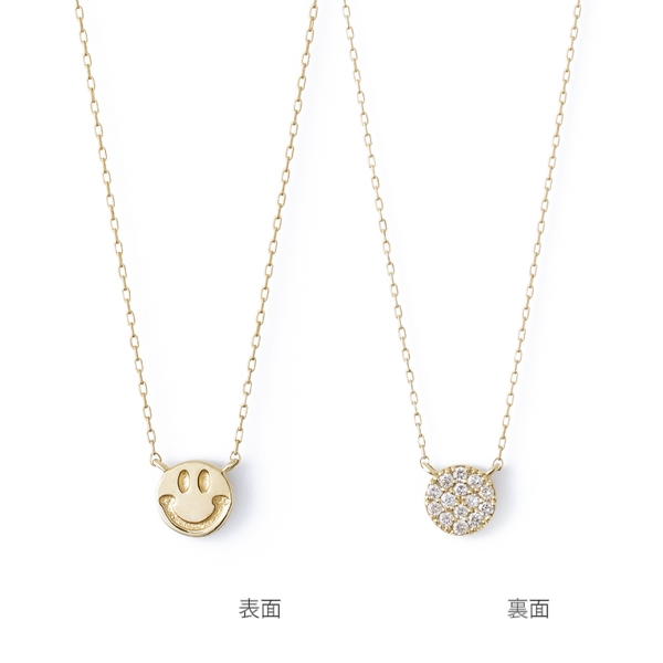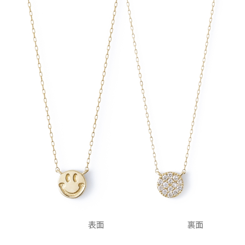 愛らしいスマイルモチーフが魅力のリバーシブルネックレス。