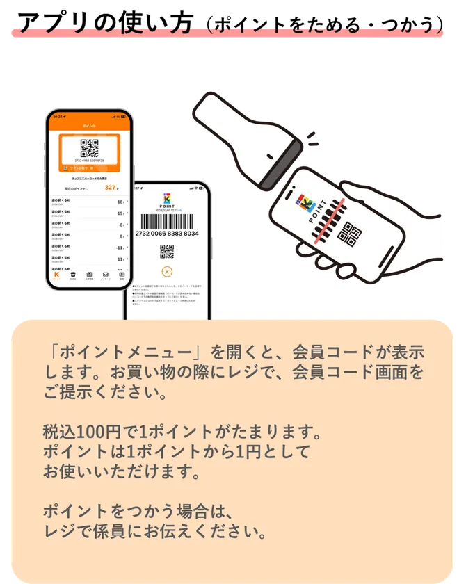 (来店時にKアプリを提示しないお客様には、ぜひスマホに「Kアプリ」をダウンロードするよう推奨してください)