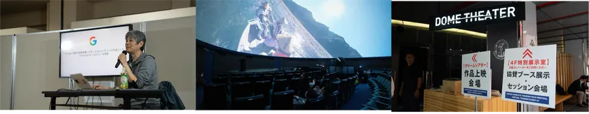 東京サテライト会場においてはセッション、基調講演は大型スクリーンで常時、視聴ができ、ノミネート作品は会場に設置されているVR機材で体験ができます。