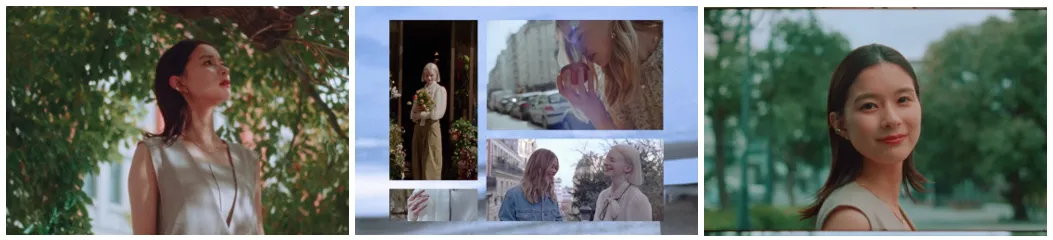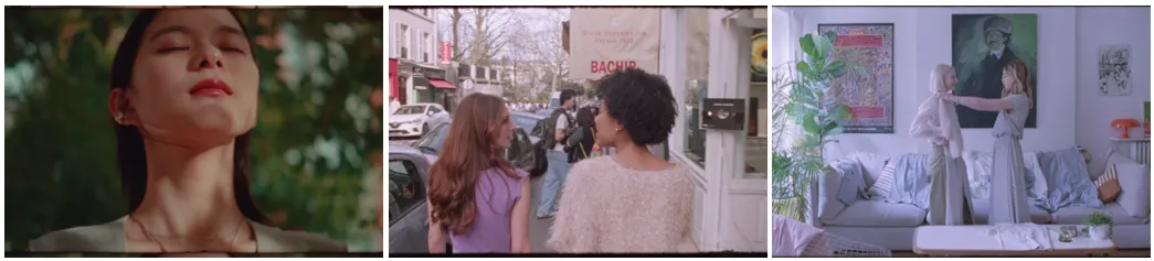 芳根さんが空を仰ぐと、場面はフランス・パリの様子へ。ロぺピクニックの服を着て街を歩く女性たちや、部屋で服を選び合う女性たちの姿がうつし出されます。