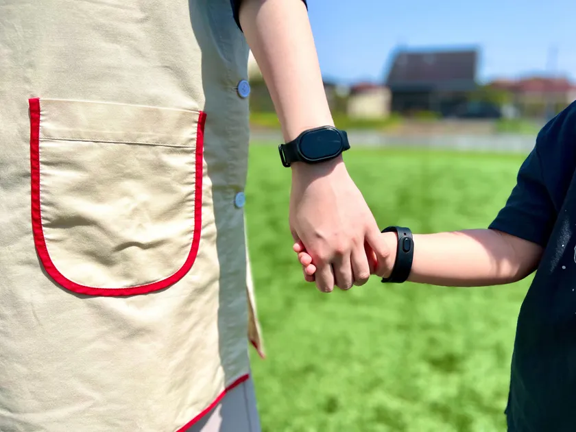 ID-Watchy(R)をつけている子どもと保育士