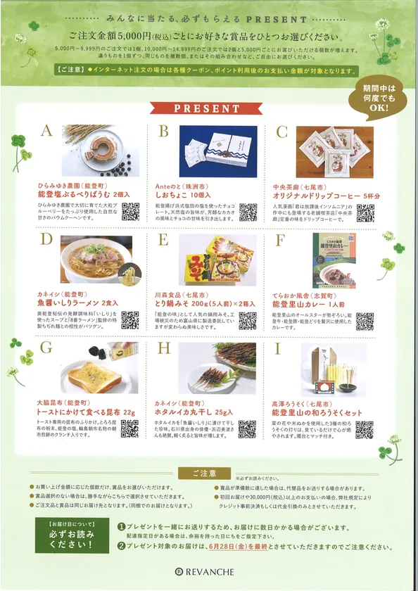 賞品 :能登で被災された事業者様の賞品合計9点