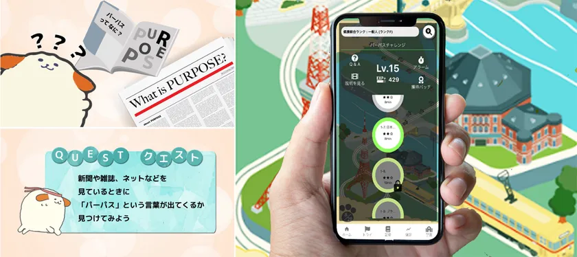 本プロジェクトでは、社員の99%が利用しているWellGoアプリを活用して、パーパスについての学習機会を提供しました。