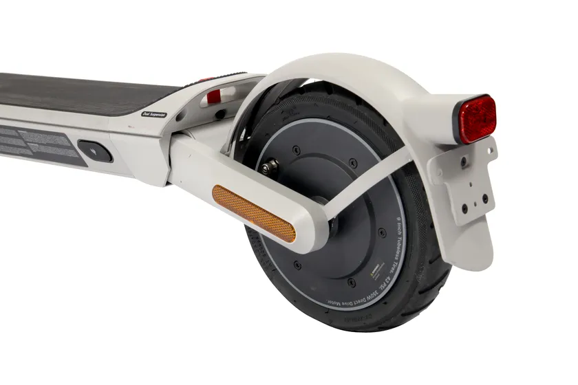 YDX3は、2023年7月の道路交通法改正で新たに加わった法律「特定小型原動機付自転車:以下 特定原付」モデルの電動キックボードで、高延性ポリマーのデュアルサスペンションを前後に装備しクッション性を高めました。