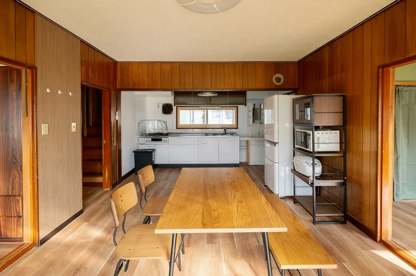 1ヶ月からご利用いただける移住体験住宅です。民間オーナー様所有の物件を2021年にリノベーションした4LDK2階建ての住宅です。広い間取りなので大人数でも快適にご利用いただけます。市街地から少し離れた住宅街に位置し、周辺には四季折々の田園風景が広がっています。
