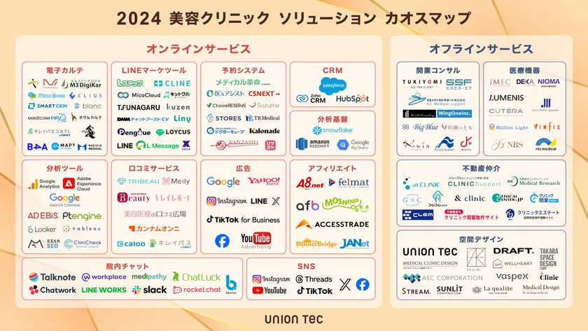 《2024年 完全版》美容クリニックの開業・運営支援サービスを 一挙にまとめたカオスマップ(全137種)をユニオンテックが公開!