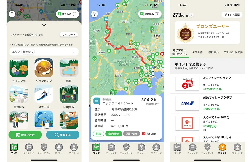 さらに「移動距離」「口コミ投稿」「チェックイン」「キャンペーン」等で【ポイント】を貯められ、電子マネーやギフト券等に交換できる機能など、使えば使うほど楽しさが満載のアプリです。